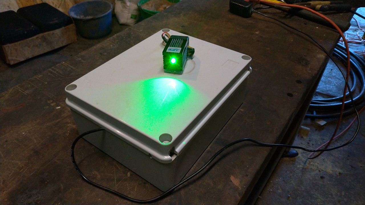I built 2 of these automated laser bird scare boxes, one for each cow shed at the farm. The cost of all of the components came in at just under €100 per unit and I spent about a day for the assembly and the set up of both boxes.