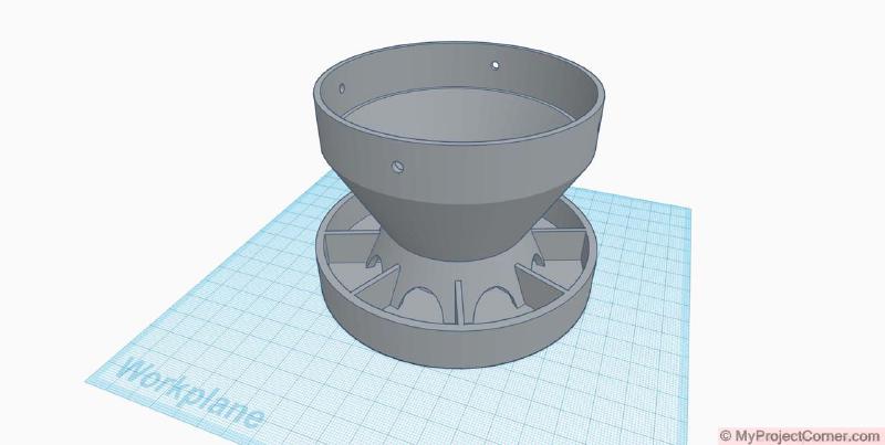 Este es el modelo que produje usando TinkerCad. La idea es permitir que los pollos tengan acceso a una cantidad limitada de comida de una sola vez para reducir los desechos.