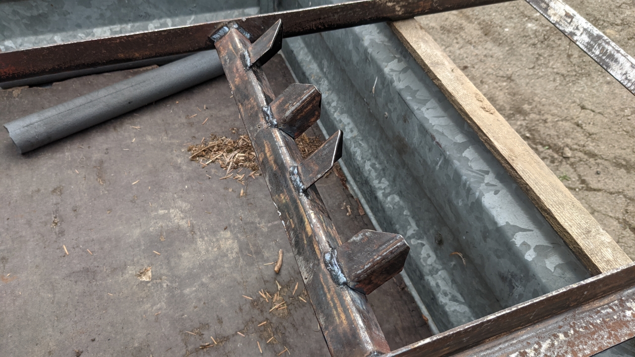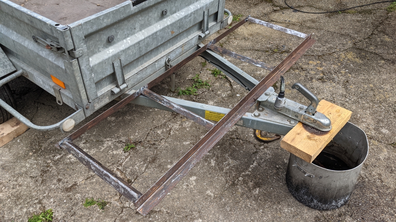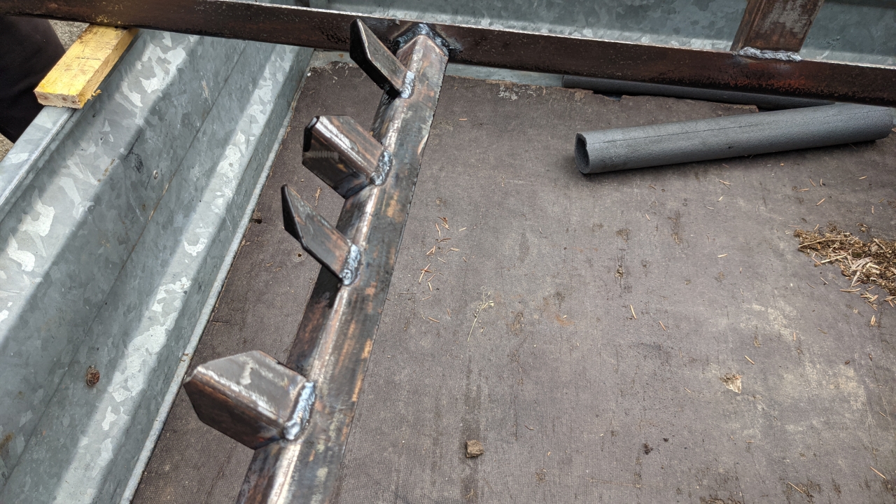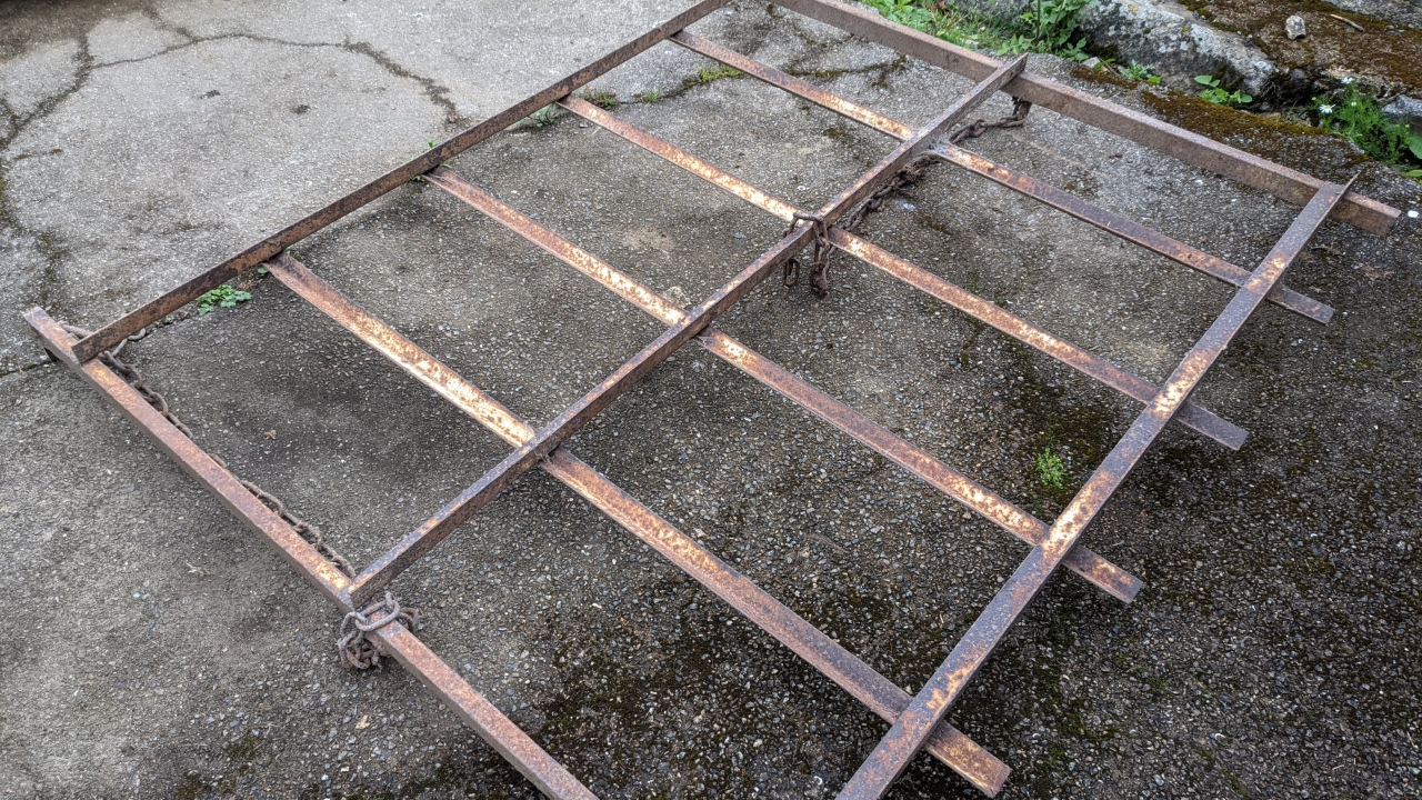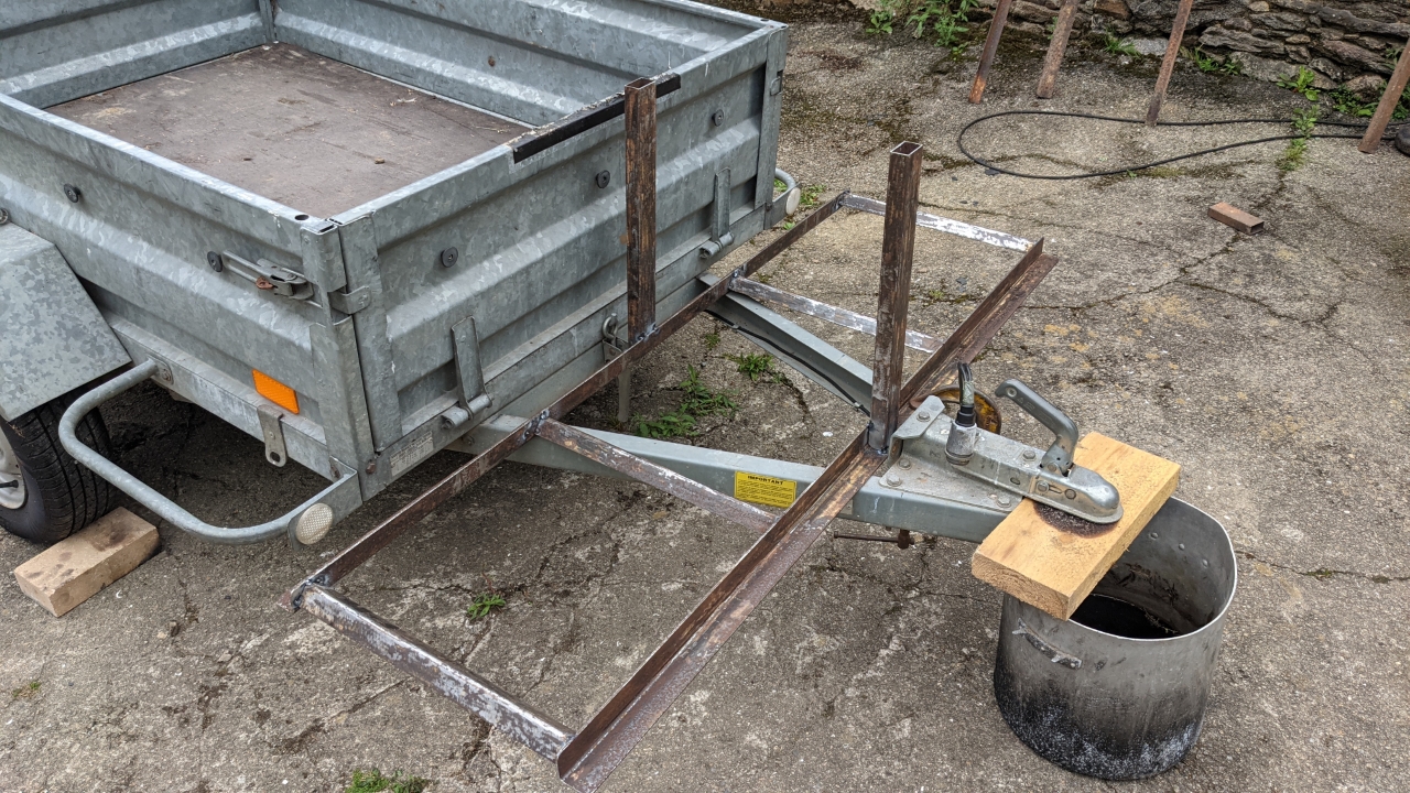 Después de ir de compras para encontrar algunas secciones de acero adecuadas para hacer el portabicicletas, me di cuenta de que hacer lo que quería iba a costar alrededor de 200 € sólo en materia prima. Me puse a pensar y recordé que cuando compré mi remolque de tractor hace 15 años, venía con 2 espalderas de acero para transportar balas de heno.