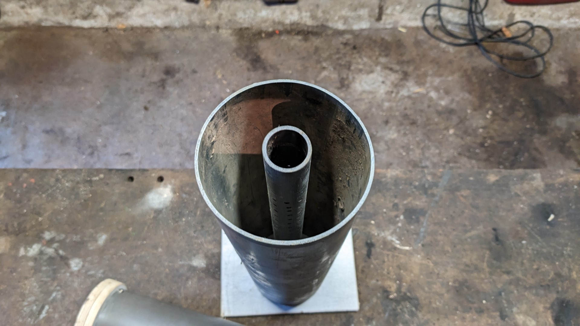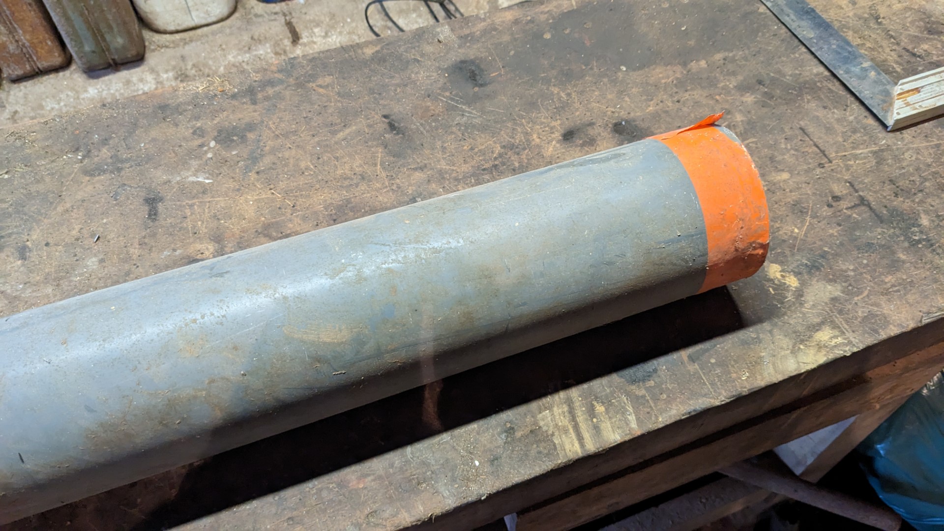 Partiendo del tubo exterior, lo corté a 600 mm de largo. Quería acabar con un tronco comprimido de unos 20 cm de largo.