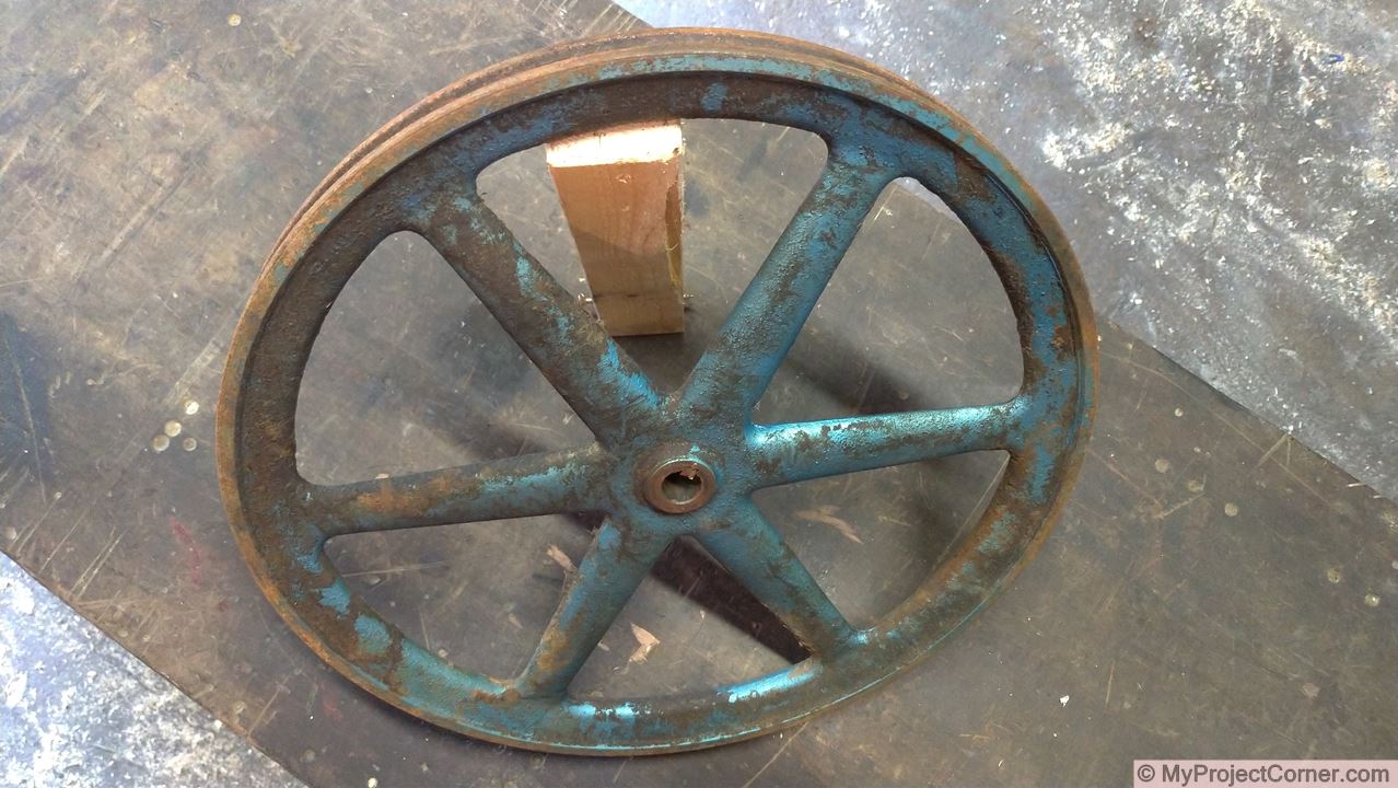 J’ai eu beaucoup de chance de trouver une grande roue à poulie sur une pompe de puits de surface redondante qui se trouvait dans une des dépendances lorsque j’ai acheté la maison, couplée à une petite poulie en aluminium qui a été achetée sur Amazon, allait me donner le bon régime nécessaire.