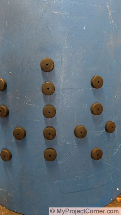 - Préparez les grandes rondelles en perçant 4 trous de dégagement pour les vis à utiliser.
