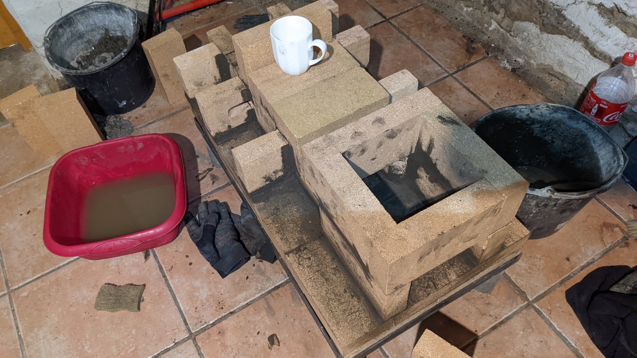Cela permet d’obtenir un support solide pour les briques du poêle à fusée.