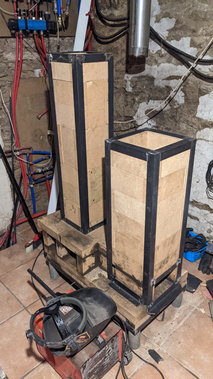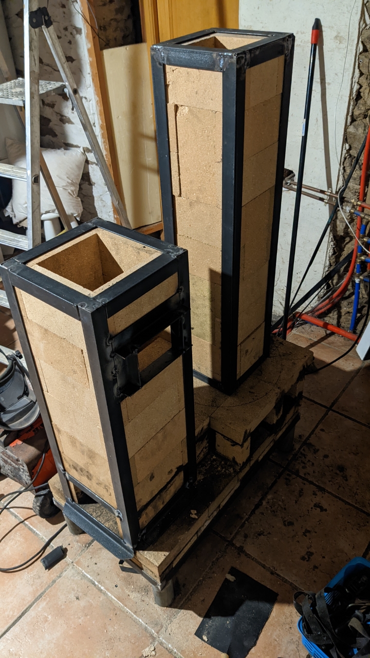 Désormais, je n’utiliserai plus de mortier, les briques réfractaires seront empilées et maintenues en place par une armature en acier.