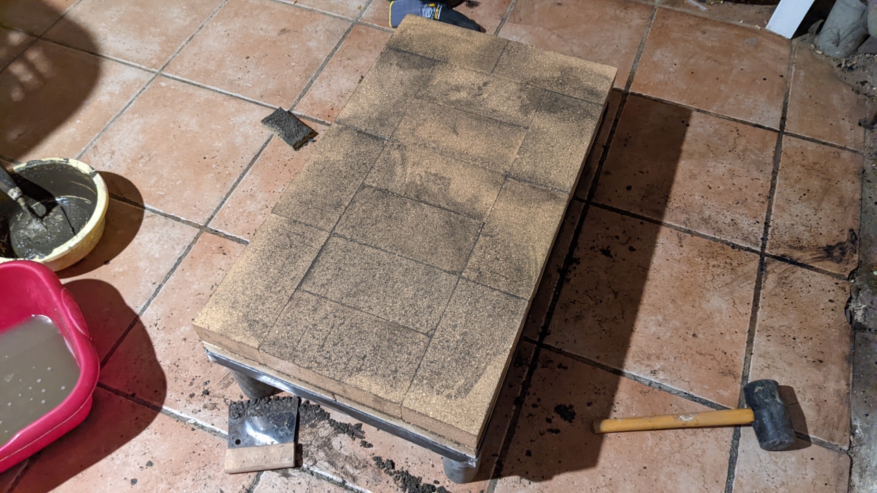 J’avais prévu de faire une pause à ce stade pour laisser sécher le mortier. Mais les briques réfractaires, même après avoir été mouillées avant leur utilisation, aspirent l’humidité du mortier.