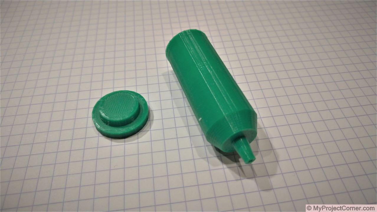 A very simple design consisting of a ‘syringe’ style body with a push on cap.