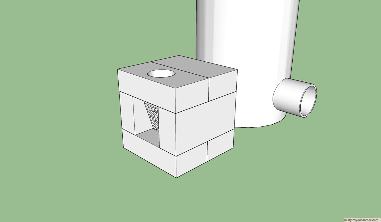 The construction is very basic, 6 fire bricks arranged as seen in my Sketch-Up model. The fire bricks are standard (here in France) 220mm x 110mm x 60 mm. Which means when arranged as shown it leaves a square hole 110mm x 100.