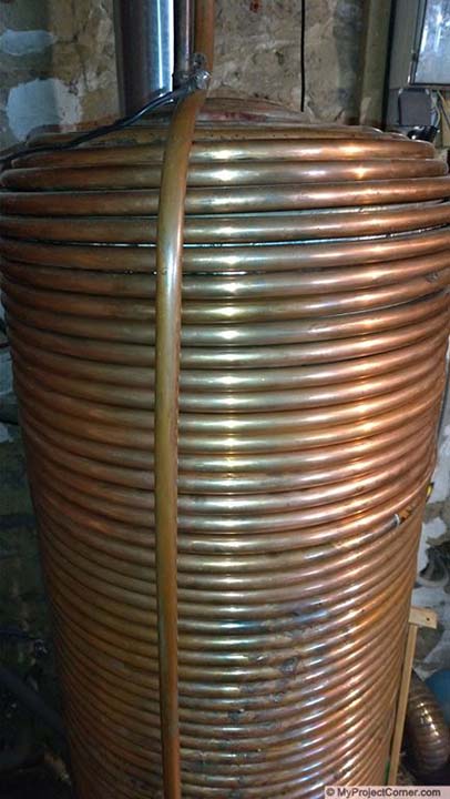 Add another 25 meter coil of copper pipe to the existing to transfer more heat.